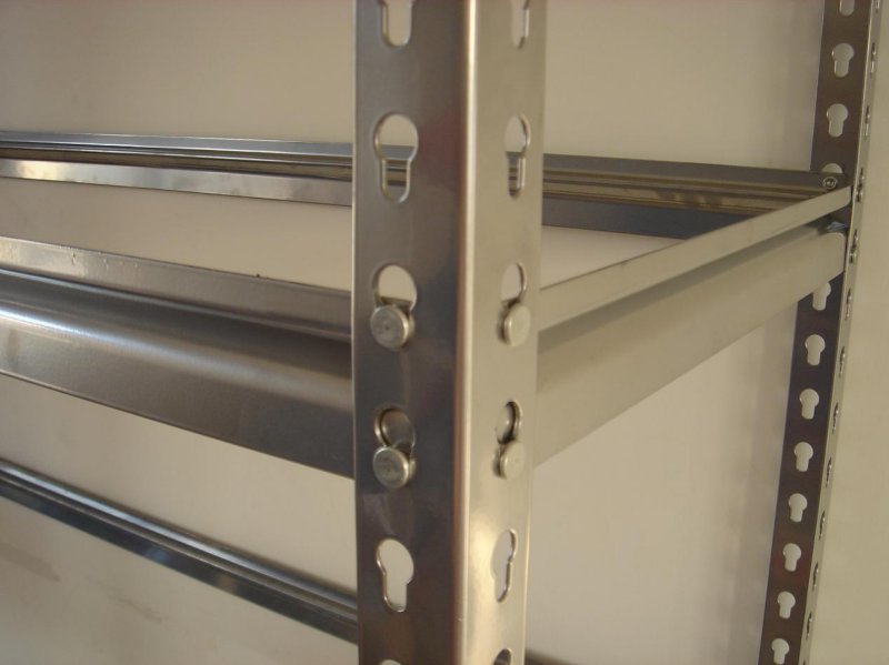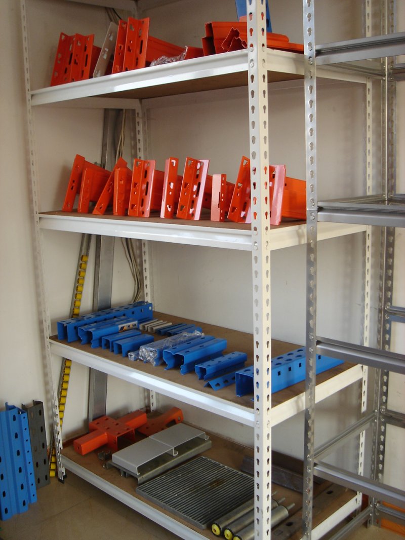 Light-duty Industrial Shelving 1、輕型貨架結(jié)構(gòu):插接組合式結(jié)構(gòu),標(biāo)準(zhǔn)組插件,不用一顆連接螺栓,拆裝方便快捷,超強型閉口鋼層板結(jié)構(gòu),層高每50mm任意可調(diào),每層更大載重150 - 250 kg. 2、貨架結(jié)構(gòu):該貨架采用橫梁與層板結(jié)合的結(jié)構(gòu)形式,中型貨架可承載100-200kg,橫梁有多種規(guī)格的斷面,結(jié)構(gòu)件均可自由裝拆,層高可調(diào)整,調(diào)距為50mm. 貨架構(gòu)件采用鋼板軋制而成,強度及剛性符合機械工業(yè)標(biāo)準(zhǔn)。二氧化碳氣體保護焊,自動焊接。配件在噴油前經(jīng)過除油、除銹、酸洗、磷化四道工序處理。180度環(huán)氧樹脂電噴粉,一般為60-80微米。橫梁在承重后變型彎曲比例為長度的1:200,公差為10%,承重后安全系數(shù)為1.5倍